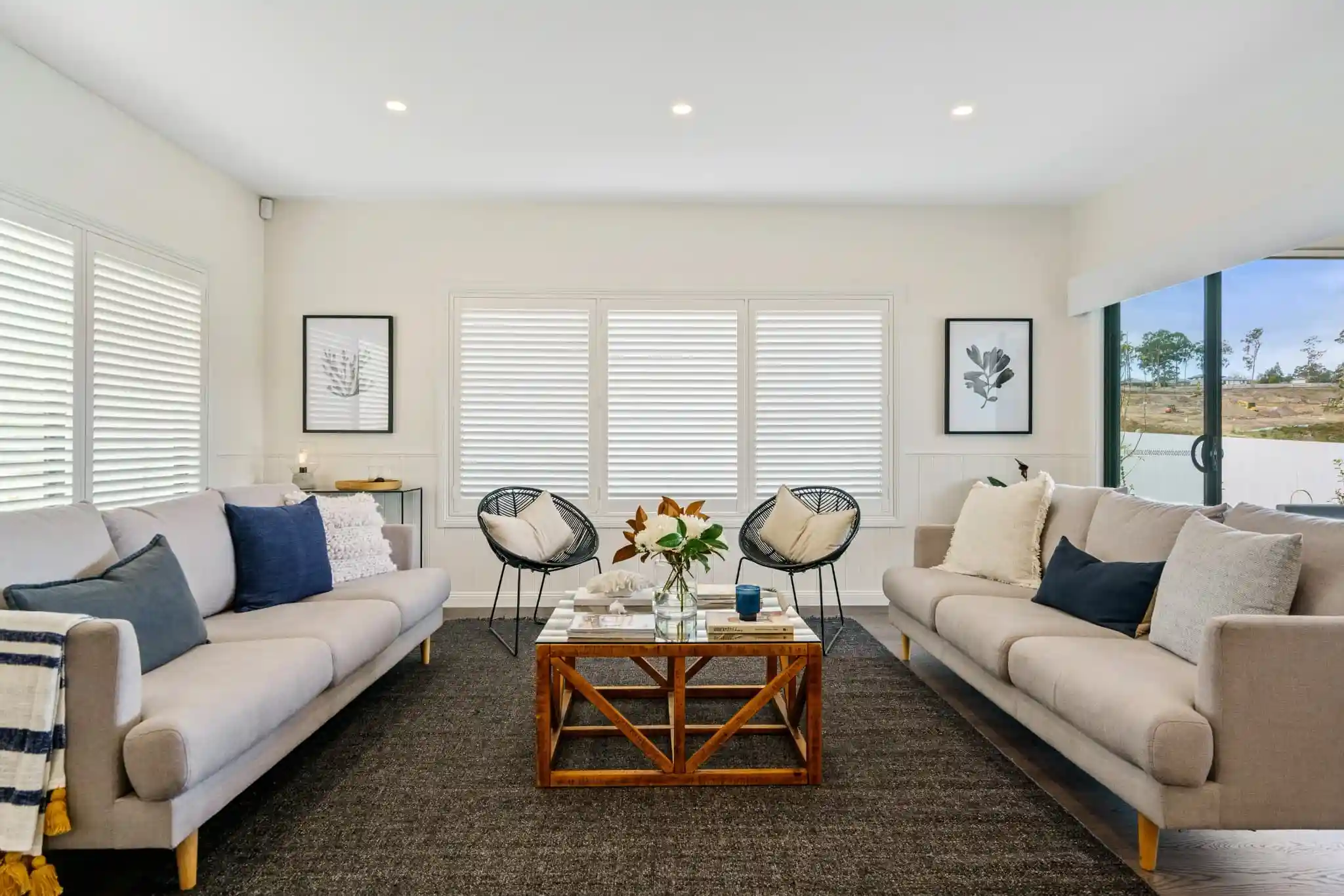 We supply shutters from Norman Australia, one of the world's leading shutter manufacturers with 50 years of experience. Custom made to your windows across a range of materials, louvre sizes and finishes to suit everything from a period home to a contemporary build. If you are also considering window furnishings elsewhere in the home, explore our curtains or roller blinds.