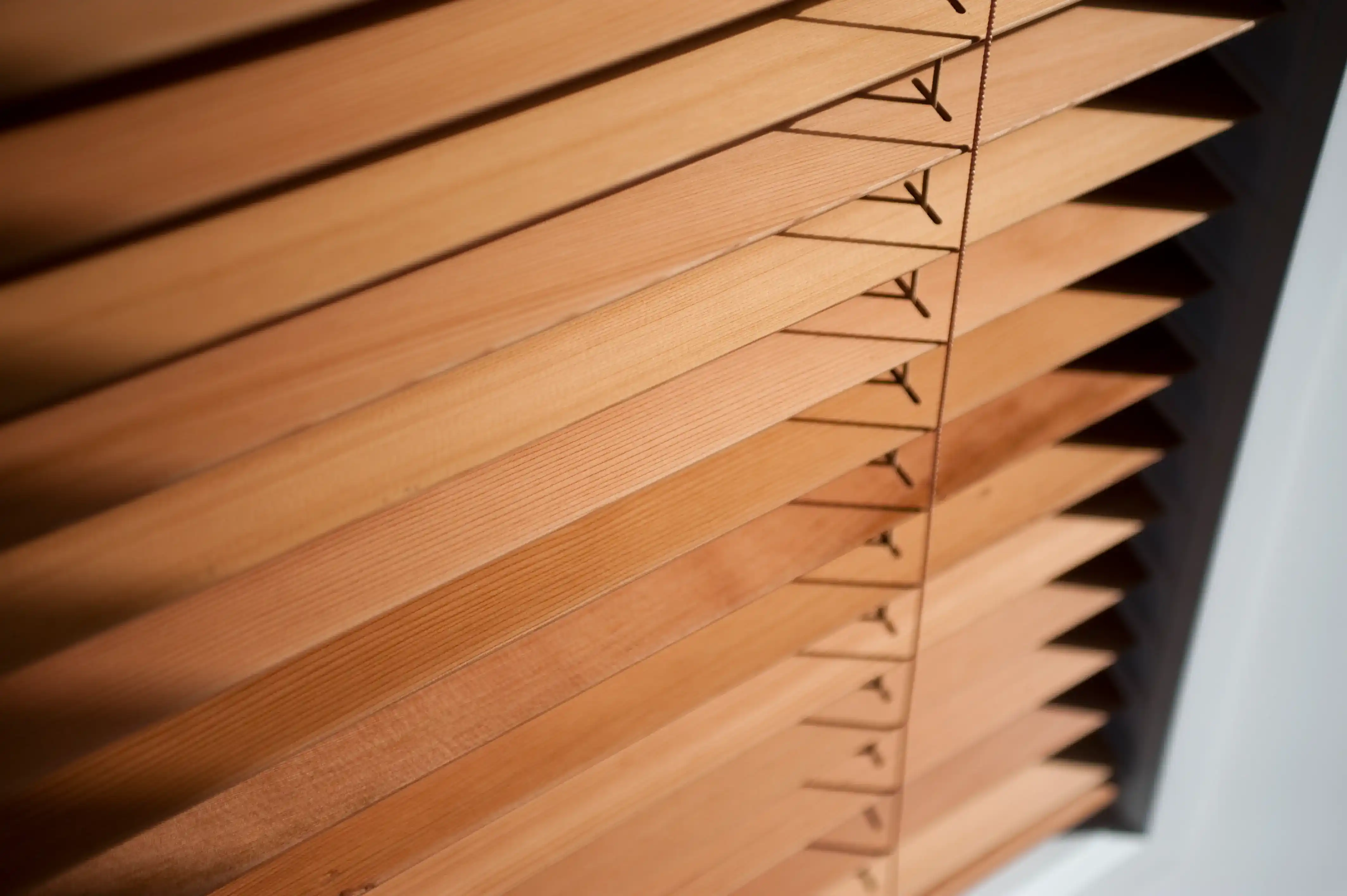Timber venetians bring the texture and warmth of a timber look into any room. We supply both real wood and faux wood options, real timber for those who want the genuine article, faux wood for high humidity areas like bathrooms and kitchens where it performs better.
