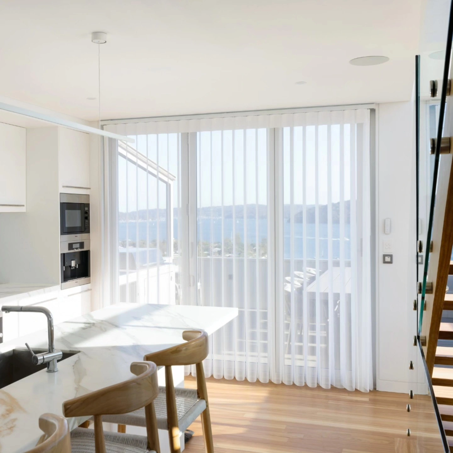 Veri Shades are a patented Australian product that genuinely does something no other window covering can. Individual curved fabric folds hang from a single track. Turn the wand one way and the opaque fabric provides privacy and blocks the light. Turn it the other way and the mesh fabric lets light filter through softly. Open the folds halfway for something in between.